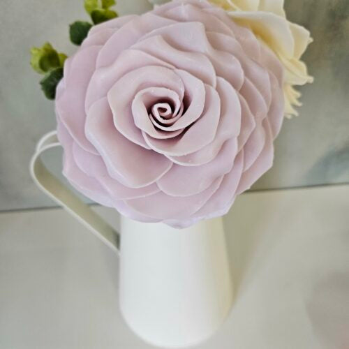 A rose flower that is reminiscent of Provence lavender fields. Soft variations of lavender color. The petals are gently curved down as in a traditional rose.
