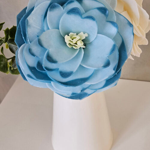 Each flower is hand-pieced together with goat’s milk, shea butter, and coconut oil soap that’s luxuriously moisturizing and lathering. Classic white gift box with description, story, directions, and tissue paper inside.